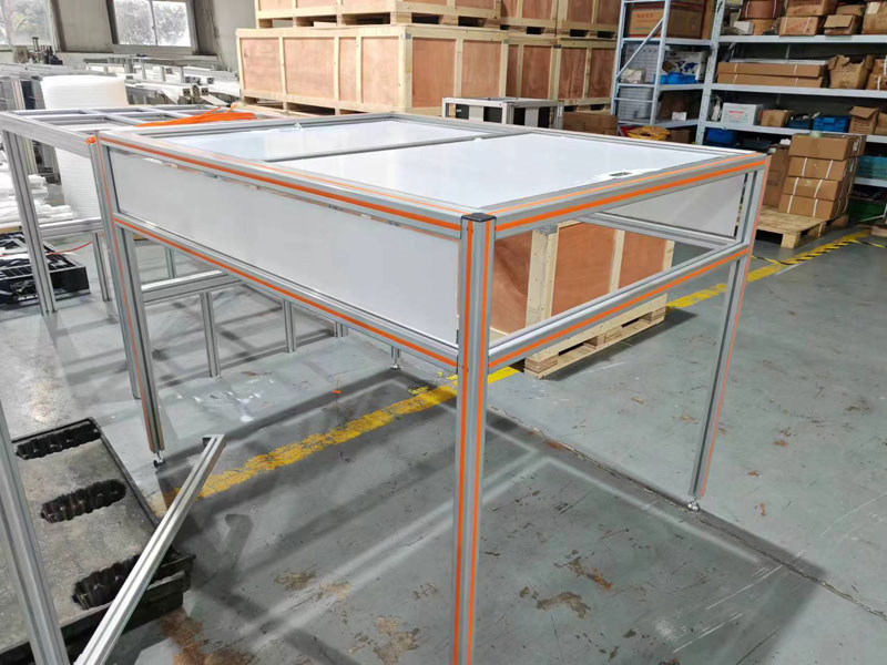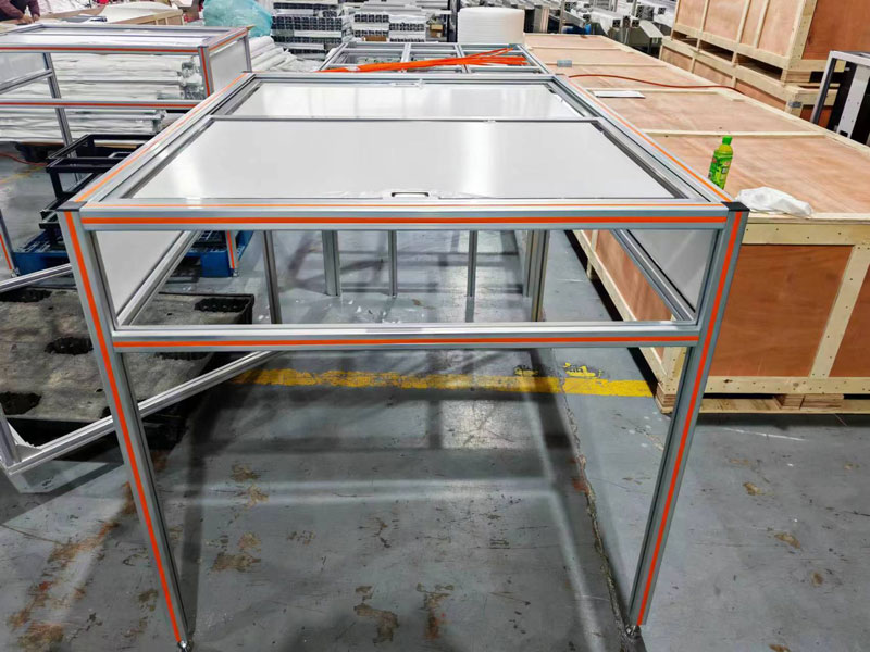 鋁型材防護(hù)罩是一種以工業(yè)鋁型材為設(shè)備外罩外殼,多見于各種非標(biāo)機(jī)械設(shè)備的外罩,各種輸送線流水線外罩,大型潔凈棚外罩,焊房大型護(hù)罩等,能起到區(qū)域隔離,靜音防塵,保護(hù)設(shè)備及生產(chǎn)人員安全。鋁型材制作的防塵罩的樣式有很多,有些是密封的,可以起到隔離噪音的作用,凈化車間環(huán)境。有些是帶有開關(guān)門的,不僅可以起到防塵的作用,而且還利于后期維修工作。亞克力板也有透明的,茶色,紅色等顏色可以選擇。